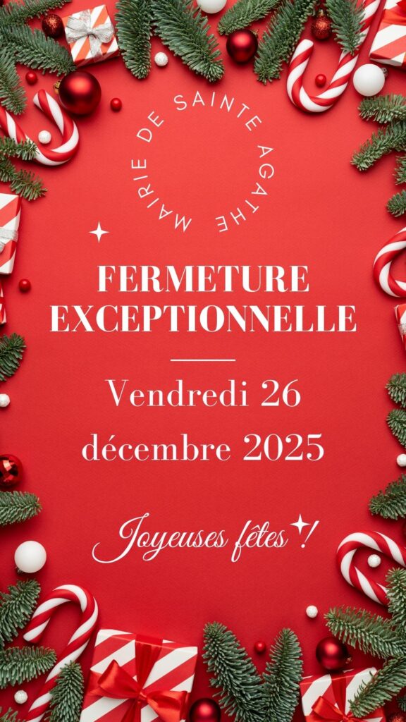 La Mairie sera exceptionnellement fermée le vendredi 26 décembre 2025. Toute l’équipe municipale vous souhaite d’agréables fêtes de fin d’année.